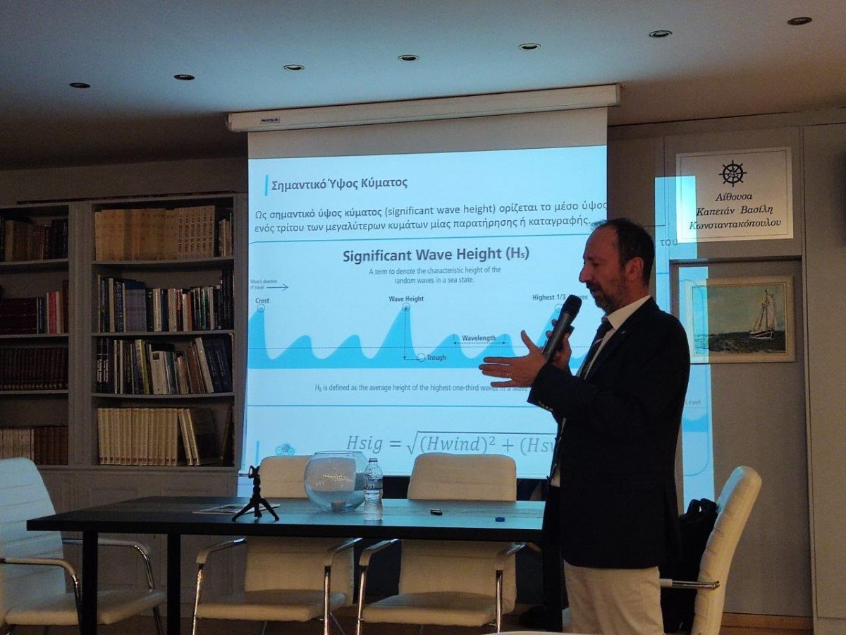 Την Πέμπτη 30 Μαϊου, πραγματοποιήθηκε στα γραφεία της Λέσχης μας, ομιλία με θέμα «Ομιλία περί ναυλοσυμφώνων, ναυτικών μετεωρολογικών όρων, χαρακτηρισμών καιρού και weather/speed claims», με ομιλητή τον Δρ. Νικόλαο Μαζαράκη, Country Manager StormGeo Greece A.S.