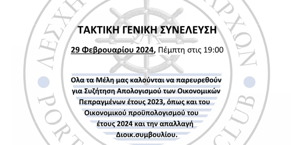 Ανακοίνωση προσεχούς τακτικής γενικής Συνέλευσης